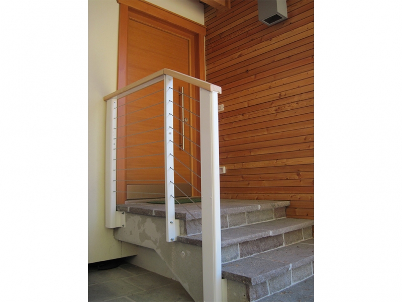 Parapetto in acciaio inox sabbiato con corrimano in legno