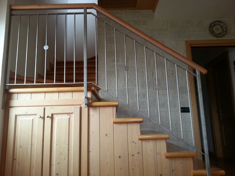 Parapetto in acciaio inox sabbiato con corrimano in legno