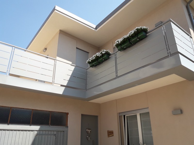 Parapetto in lamiera cieca con feritoie in abbinata con tapparelle in alluminio alta densità